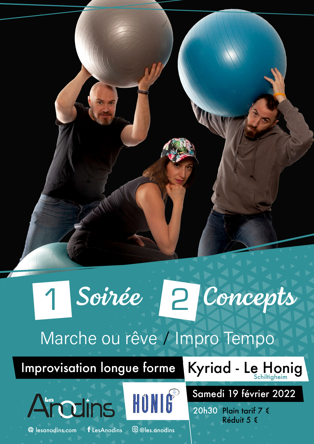 Bon plan : le Honig, restaurant du Kyriad, permet aux spectateurs inscrits via Helloasso de profiter, avant le spectacle, du menu “Anodins” à 15 € : une tarte flambée, une boisson (soft, verre de vin ou de bière) et un dessert.