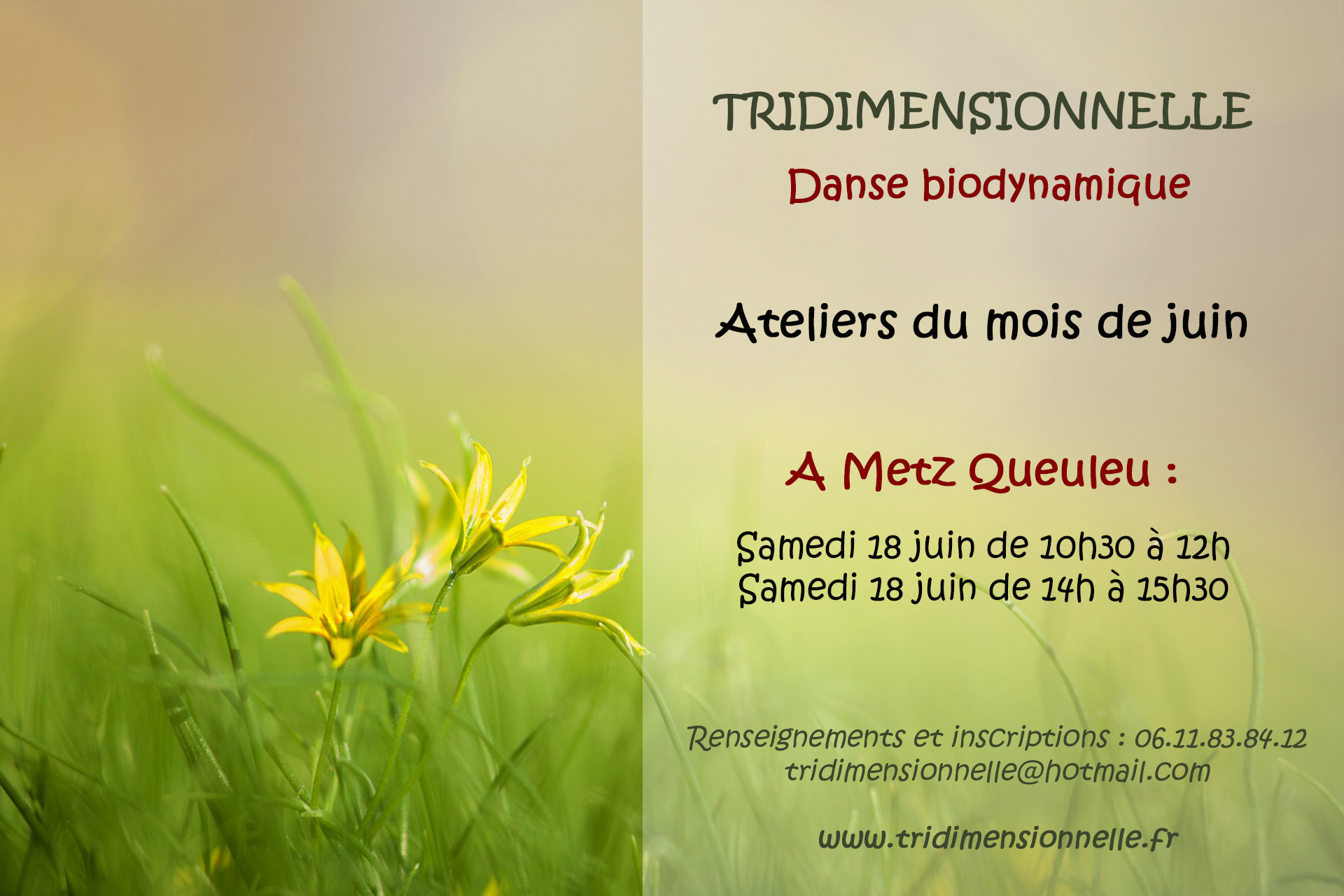 Atelier mensuel de mouvement et danse biodynamique, samedi 18 juin sur Metz Queuleu (adresse exacte donnée un peu avant l'atelier) de 10h30 à 12h00.