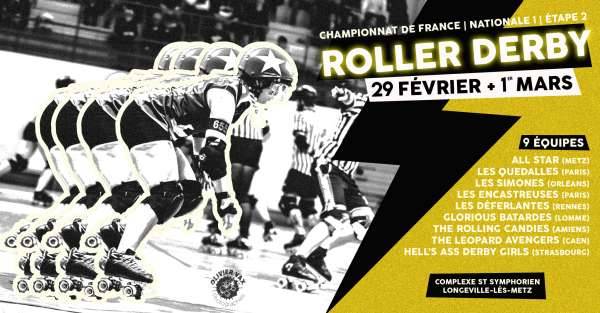 Vous êtes cordialement invité les 29 février et 1er mars prochain par le Roller Derby Metz Club pour la deuxième étape du Championnat de France de Roller Derby, Nationale 1.
