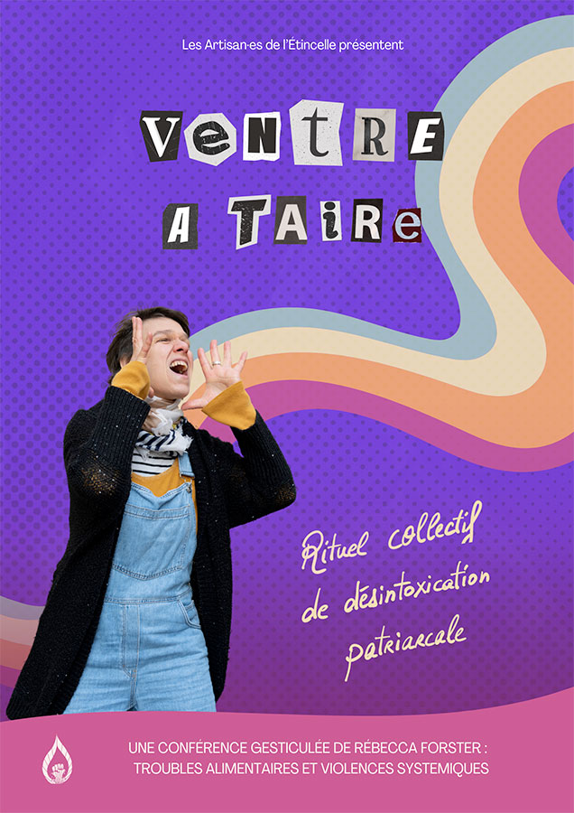 Une conférence gesticulée qui parle de santé mentale, de troubles du comportement alimentaire et de leurs liens avec des traumatismes et des violences systémiques.