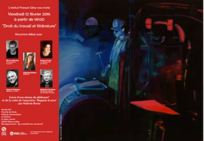 L’Institut François Gény vous invite à une manifestation originale sur le thème "Droit du travail et littérature",organisée par le Professeur Frédéric Géa, le 12 février à partir de 14h30, amphi K12 de la Faculté de Droit, Sciences économiques et Gestion de Nancy en présence de Stéphanie Dupays (Auteur de "Brillante", Mercure de France), Antoine Lyon-Caen (Professeur agrégé des facultés de droit), Nicolas Mathieu (Auteur de "Aux animaux la guerre", Actes Sud),Isabelle Stibbe (Auteur de "Les maîtres du printemps", Serge Safran), Charles Tordjman (Metteur en scène), avec la participation d’Emmanuelle Filipetto et Emilie Jeanmaire (Doctorantes en droit du travail).