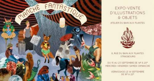 Pour leur exposition de septembre, les artistes de l’Atelier du Bain aux Plantes vous invitent à plonger dans des univers étranges et oniriques... A l’occasion de leur second partenariat avec le Festival du Film Fantastique de Strasbourg, vous aurez le plaisir de découvrir des illustrations inédites, issues des imaginations les plus fantasques et poétiques! Comme à chaque ouverture de l’Atelier, les visiteurs auront également la possibilité de faire l’acquisition de reproductions, pièces d’artisanat et ouvrages de micro-éditions en rapport avec le thème de l’exposition.