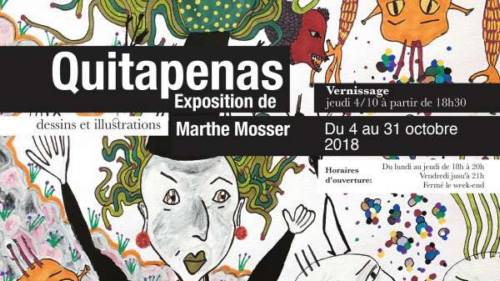 Vernissage de l’exposition Quitapenas, une sélection des illustrations faites par Marthe Mosser qui nous dévoile ainsi une partie de son univers le plus intime.