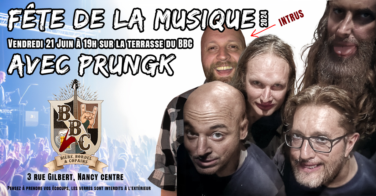 Ce vendredi, c'est la Fête de la Musique au BBC. Tu pourras retrouver le groupe PRUNGK qui sera sur la terrasse du BBC.