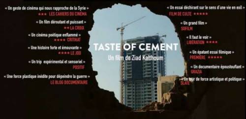 L’association France-Syrie Entraide FSE en collaboration avec cinéma Caméo ont le plaisir de vous inviter à la projection du documentaire Taste of cement suivie d’une rencontre avec le réalisateur Ziad KALTHOUM.