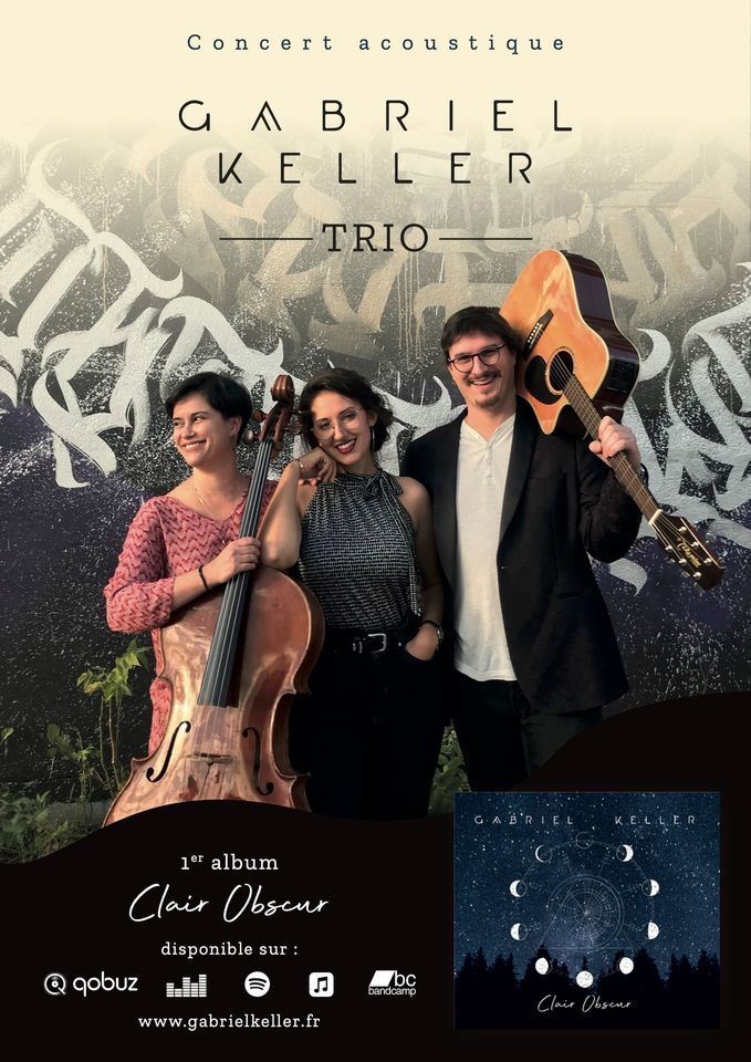 Gabriel Keller Trio est un groupe de musique acoustique atypique composé de Charlotte au chant, de Lucie au violoncelle et de Gabriel à la guitare.