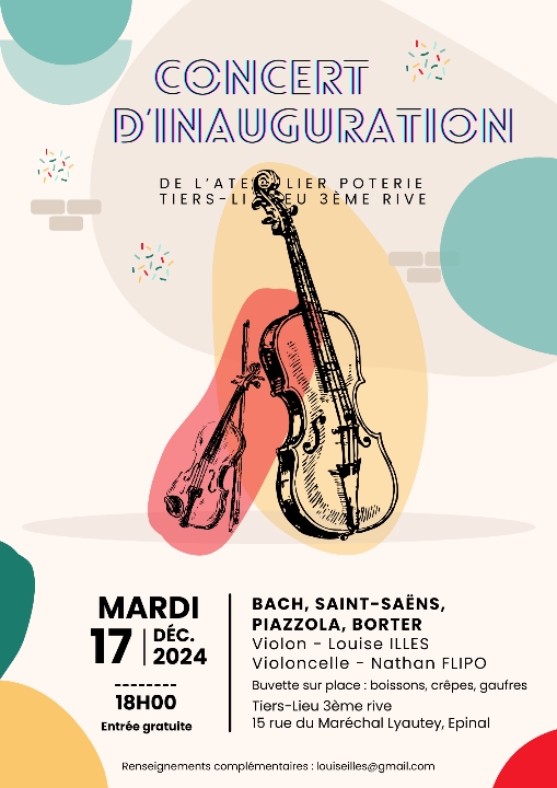 Venez participer au concert d'inauguration de l'atelier poterie, le mardi 17 décembre 2024 à 18h.