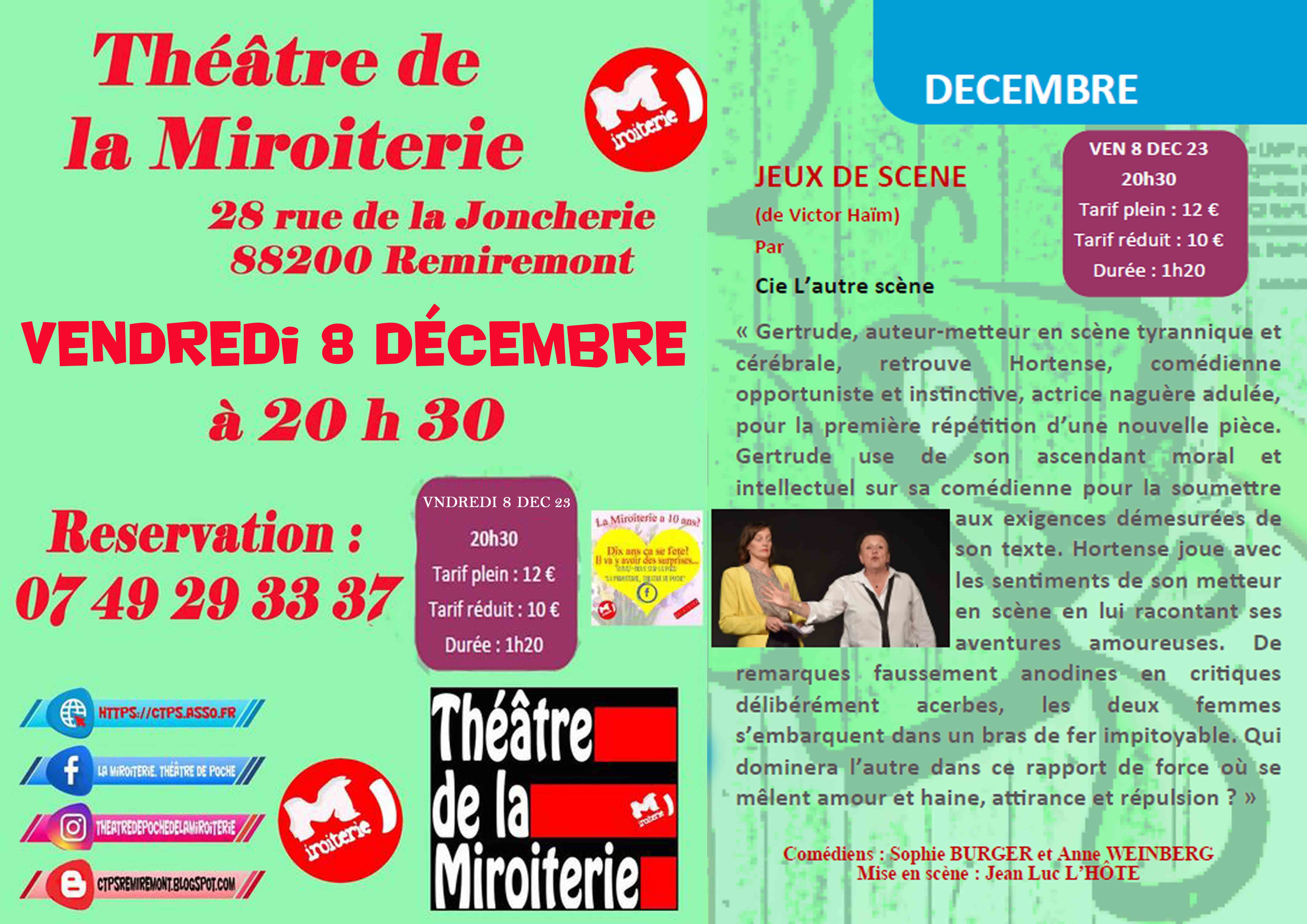 Depuis novembre 2013, l’association CTPS fait vivre le Théâtre de la Miroiterie, un lieu de création et de diffusion indépendant. C’est également un outil de travail au service de la Culture.