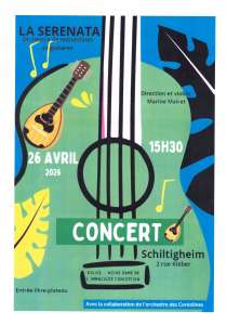 LA SERENATA de Schiltigheim est un orchestre de mandolines accompagnées par les mandoles, liuto cantabile, guitares et contrebasse, sous la baguette de Marine Mairet, cheffe dynamique qui est également violoniste soliste et enseignante de violon. Cet Orchestre à Plectre (OAP) interprète des pièces baroque, classiques, modernes, populaire et traditionnelles ou écrites pour les films comme Chi Mai, Borsalino, Le temps des cathédrales ou Danse mon Esméralda. Pour ce 92ème Anniversaire et lors de cette Fête de la mandoline, le programme se composera d’extraits d'un répertoire varié où figurent : Carolan, E. Mezzacapo, R. Cocciante, Yoshitomo, Rudolf Krebs, Calace, L. Cohen, et Sylvain Dagosto qui  a composé et arrangé spécialement pour la mandoline et les OAP .