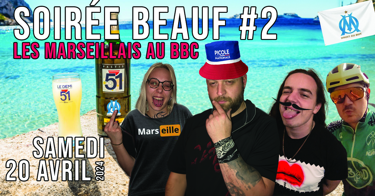 Préparez-vous à enfiler votre plus beau jogging et à plonger dans l'univers unique de notre désormais légendaire Soirée Beauf ! Pour cette deuxième édition, le samedi 20 avril, nous mettons les petits plats dans les grands avec un thème qui va faire parler : Les Marseillais au BBC. ??