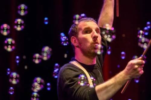 Spectacle intimiste et singulier, Les Petits riens est une succession d’instantanés de poésie visuelle et sonore. Sébastien Kauffmann s’empare d’une matière capricieuse, la bulle de savon, qu’il dompte en manipulateur précautionneux. Accompagné d’un musicien au milieu de vieux objets, son souffle donne corps à des arabesques oblongues ou rondes qui rebondissent l’une sur l’autre et se déplacent au gré des fluctuations de l’air. Autant de sphères dans lesquelles la fumée se concentre et la lumière forme des arcs-en-ciel enchanteurs. Notre bulleur les couve du regard, les caresse pour mieux les déplacer. Les vibrations de son corps testent les limites de cette fine couche d’eau savonneuse frissonnant dans l’espace. Sa recherche autour de la fragilité le place au service de son objet d’attention dans un dialogue éphémère. Le temps d’existence limité de chaque bulle et leur inévitable éclatement focalisent le regard du public sur le moindre geste. Chacun guette les improbables réussites d’un stakhanoviste de l’aléatoire, érigé au rang d’art.