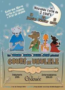 Si vous avez raté le coche du premier cours, sachez qu’un nouveau cycle recommencera en avril pour à nouveau trois mois consécutifs. Cela permettra à nos débutants de passer au niveau supérieur et pour les plus avancés de pouvoir participer à nos futures soirées "chansons collectives au ukulélé".