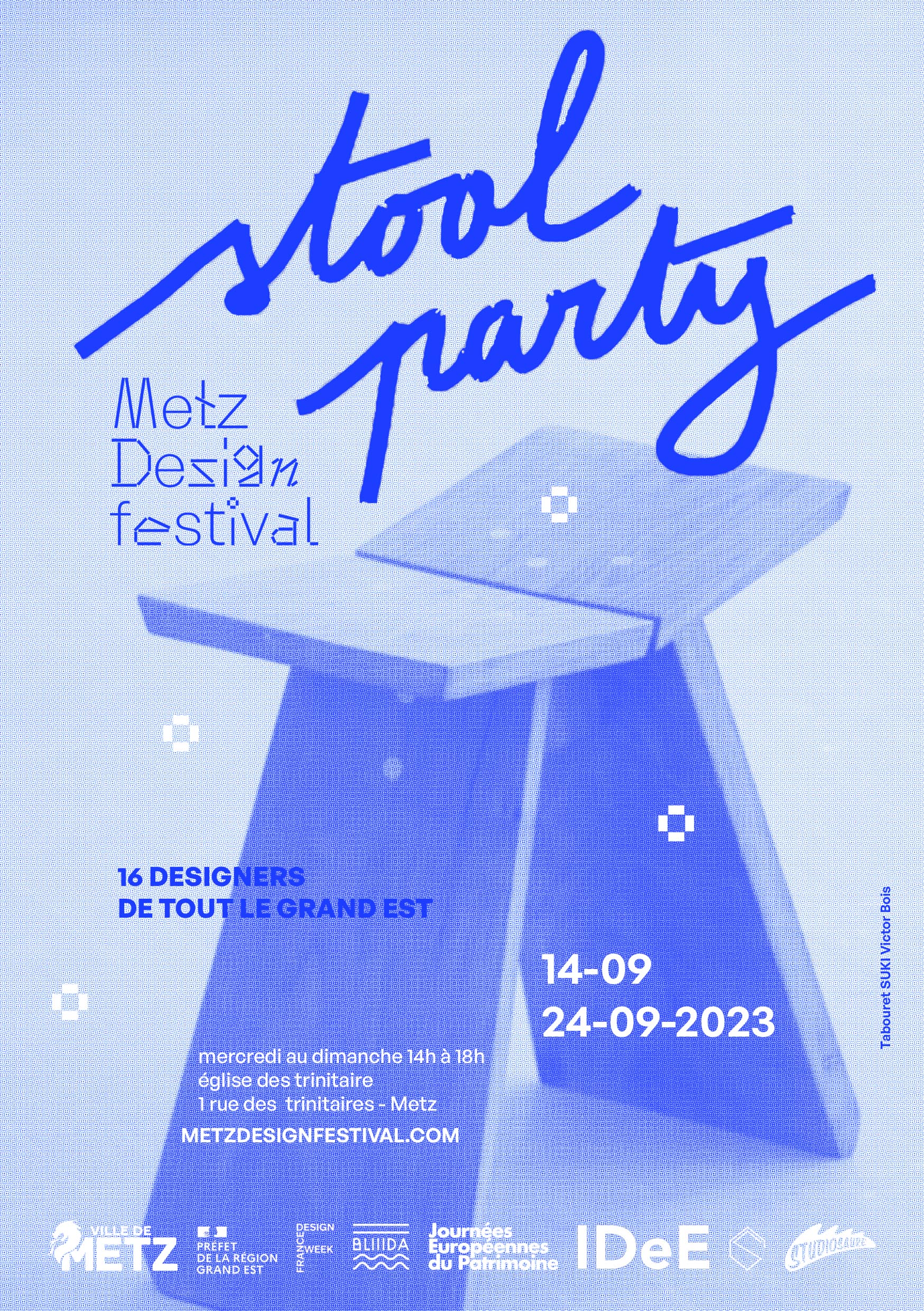 S'inscrivant dans la France Design Week, "STOOL PARTY" est la troisième édition du Metz Design Festival proposé par l’association Modular. À cette occasion, une sélection de 16 designers du Grand Est se prêtent à cette thématique du tabouret, à travers des objets mêlant bois, aluminium, tissus, béton, terre, végétaux, plastique…