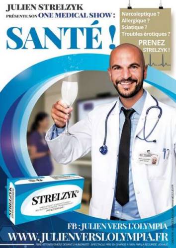 Les Chirurgiens, le Médechien, les Infirmères, les spécialistes, les médecins généralistes, les médecins du travail, le nouveau médicament révolutionnaire STRELZYK, le bloc opératoire, une comédie médicale... Julien réussit le challenge de vous faire rire avec le thème médical !