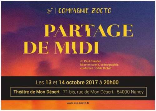Les 13 et 14 octobre à 20h00 au Théâtre de Mon Désert à Nancy