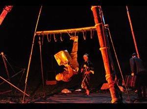 Les trois protagonistes, trois voyageurs, deux hommes et une femme, vous transportent avec leurs acrobaties aériennes théâtralisées, leurs émotions, tissant leurs rencontres complices, sur et sous la structure autonome en bambous géants.