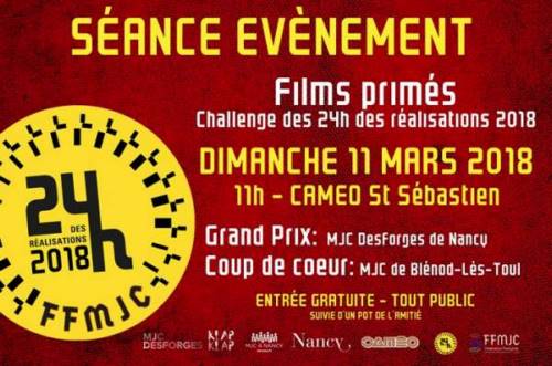 Les films primés à la finale de Paris seront projetés exclusivement au cinéma CAMEO Saint Sébastien de Nancy le dimanche 11 mars prochain à 11h en présence des équipes gagnantes!