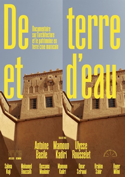 Projection inaugurale du festival du film d'architecture de la Maison de l'architecture de Lorraine. "De terre et d'eau ; Une quête sur l'architecture et le patrimoine en terre crue au Maroc" retrace le parcours de trois jeunes architectes ; Antoine Basile et Ulysse Rousselet de l'Atelier Géminé et leur confrère Mamoun Kadiri, qui partent à la rencontre du savoir-faire local marocain du pisé.