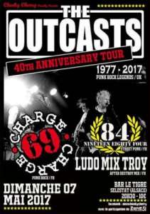 Non le Punk n’est pas mort et l’association Cheeky Cherry a bien l’intention de vous le prouver ! Dimanche 7 mai, veille de jour férié, c’est au Tigre que ça se passe avec LA soirée punk à ne pas manquer : 3 groupes pour un show de déglingués ! Pour le plus grand plaisir de tous : The Outcasts, groupe mythique originaire d’Irlande du Nord viendra fêter ses 40 ans de carrière sur la scène de votre bar préféré! De retour depuis 2010 le groupe n’a rien perdu de sa rage et son énergie sur scène : du vrai pur punk à l’ancienne. Plus de 20 ans d’existence et de concerts, Charge 69, groupe phare de la scène punk française, sera également de la partie! Et pour faire suer les crêtes et chauffer les rangers le groupe 1984 ouvrira les festivités !