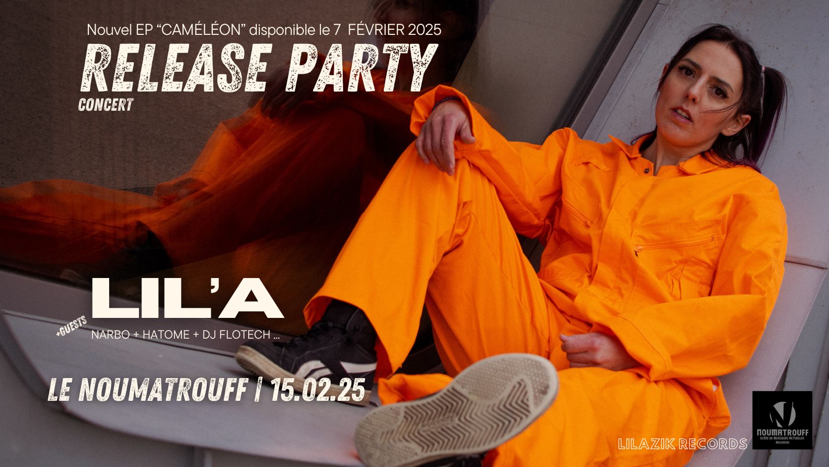 Sortie du nouvel EP de LIL'A : "CAMÉLÉON" : La Release Party !!? Venez célébrer la sortie du nouvel EP lors d’une soirée concert au Noumatrouff ! Découvrez des artistes locaux en 1ère partie, des invités, et des morceaux inédits. Une occasion unique de découvrir les nouvelles chansons de l'EP en live, et de vivre cette sortie ensemble.