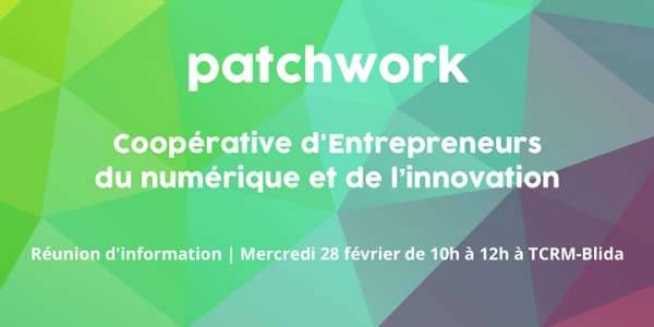 Participez à notre Réunion d’Information Collective pour découvrir l’entrepreneuriat en Coopérative d’activités & d’Entrepreneurs et le projet de Patchwork. Nous serons là pour répondre à toutes vos questions. Venez échanger avec des entrepreneurs connectés et ouvrez vos horizons !