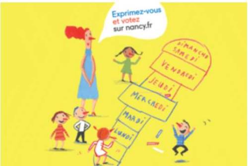 La Ville de Nancy lance une grande concertation sur les rythmes scolaires et les temps de l’enfant. Exprimez votre avis, partagez votre témoignage, venez débattre et votez du 20 décembre 2017 au 12 janvier 2018.