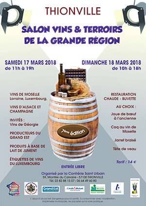 Rendez-vous au Salon Vins et Terroirs de la Grande Région organisé par la Confrérie Saint-Urbain de Thionville.