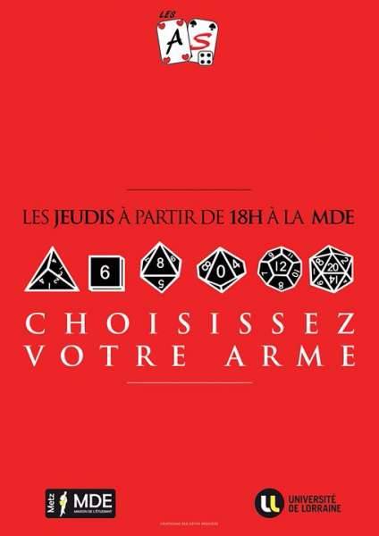 Retrouvez nous tous les jeudi à la MDE du Saulcy, à Metz pour venir découvrir des jeux !