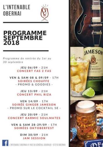 Programme du mois de septembre 2018, c’est la rentrée à L’Intenable Obernai. Une rentrée rock’n’roll et riche en événements.