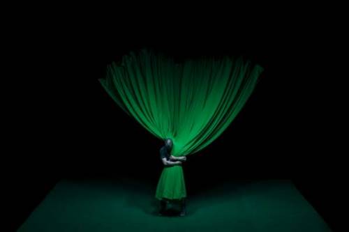 Terme argotique désignant un plateau de théâtre, The Green est aussi ce fond de couleur utilisé pour les trucages de cinéma. L’artiste visuel et metteur en scène finlandais Kalle Nio se joue de l’illusion et de la réalité dans un dialogue fécond entre artisanat et technologie. Seul en scène, il combine astucieusement manipulation marionnettique, projections vidéo, spatialisation sonore et effets magiques pour brouiller nos perceptions. Le plateau nu, tout de vert vêtu, devient vivant et s’anime, aux frontières de l’étrange. La partition sonore englobante récrée un environnement cinématographique dans lequel les bruits se déplacent comme des fantômes qui errent librement, entre ombre et lumière. La narration, composée de scènes fragmentaires volontairement interrompues, constitue une toile plus grande dans laquelle il devient de plus en plus difficile de distinguer le vrai du faux.