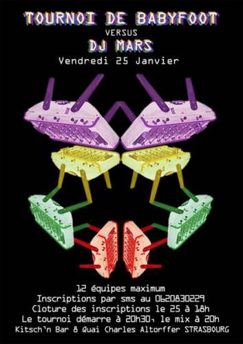 Tournoi de Baby-Foot Versus Dj Mars ce Vendredi! Inscription au numéro qui est noté sur l’affiche jusqu’à Vendredi 18h! Et souviens-toi bien du conseil de ton mentor Jean-Claude Van Damme: Quand tu prends confiance en la confiance, tu deviens confiant! A Vendredi!