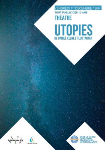 Les deux auteurs, à la langue sensible, se sont vus confiés, par la compagnie Les Méridiens, l’écriture de deux pièces courtes sur le thème des utopies de la jeunesse. La première saison du projet a été l’occasion de plusieurs rencontres, rythmées par des discussions, des ateliers d’écriture et des interviews, avec des jeunes gens âgés de 15 à 20 ans issus de plusieurs établissements scolaires alsaciens. Peu à peu en confiance, ils se sont livrés et ont délivré leur imagination pour partager avec nous leurs utopies pour demain. Les auteurs ont subtilement laissé infuser toutes ces traces pour écrire des pièces uniques inspirées par un travail d’action artistique au plus près de la jeunesse. Créé en diptyque et porté par deux comédiens, Utopies 1.2 (saison 2) sera joué dans les établissements scolaires ayant participé au projet ainsi que sur d’autres territoires.