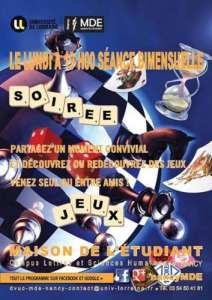 http://www.univ-lorraine.fr/content/maison-de-l%C3%A9tudiant-mde https://www.facebook.com/nancyMDE/timelineLes 74 évènements archivés à la MDE, Maison de l'Etudiant de Nancy