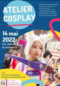 Rendez-vous le 14 mai à la MJC Lorraine pour un atelier COSPLAY* de 14h à 18h, animé par l'association Rise Cosplay