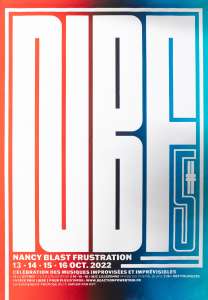 Organisée par le collectif nancéien RPT (Reaction Power Trio), NANCY BLAST FRUSTRATION est une manifestation centrée sur les musiques et performances improvisées et expérimentales, qui aura lieu à Nancy les 13, 14, 15 et 16 octobre 2022.