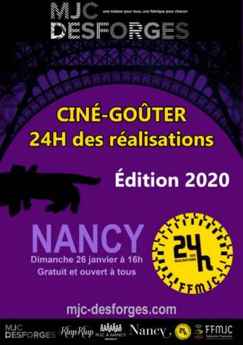 La projection des films réalisés pendant le challenge nancéien des 24h de la réalisation se déroulera le dimanche 26 janvier 2020 à 16h lors d’un ciné-goûter. La séance est gratuite et ouverte à tous. Elle aura lieu devant le jury qui délibérera pour ensuite remettre ses prix à l’issue de la projection. Le public votera également à l’issue de la projection.