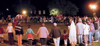 Des musiques d’hier pour des danseurs d’aujourd’hui : deux pas à gauche, un pas à droite, une frappe de pied, un mouvement de bras… des mouvements simples expliqués par les musiciens de l’ENSEMBLE GUILHEM ADEMAR qui mènent le bal, expliquant les danses et dansant avec le public.