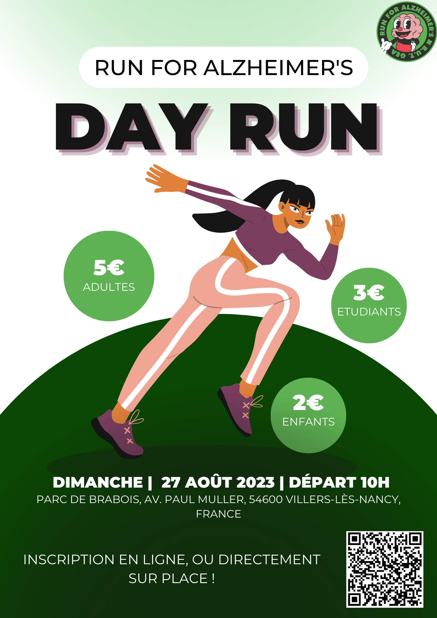Notre course se déroule ce dimanche 27 août à 10h00 au Parc Brabois (Villers-lès-Nancy 54600). C’est une course caritative, le but n’est donc pas la performance mais bien le partage. C’est pourquoi nous avons décidé de faire une course aussi bien pour les coureurs aguerris que les marcheurs du dimanche.