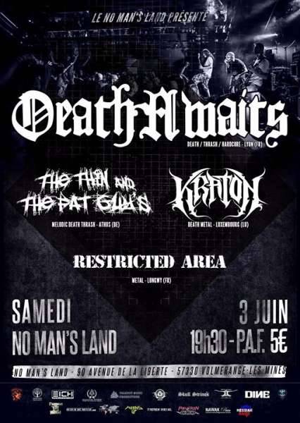 DeathAwaits vient au No Man’s Land pour défendre son nouvel ’Solve Coagula’ sorti en avril 2017 (Sliptrick Records). Pour l’occasion, ils seront accompagnés de Kraton The Thin and the Fat Guy’s (Official) et Restricted Area pour retourner la salle le 3 juin !