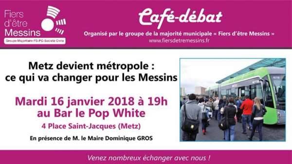 Notre premier café-débat de l’année 2018 a pour thématique Metz devient métropole : ce qui va changer pour les Messins., en effet, au 1er janvier 2018, Metz passe en statut de métropole.