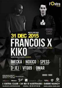 Toute l’équipe de L’Ostra Club vous invite à fêter cette fin d’année 2015 et présente deux pointures de la scène Techno française : KIKO et Francois X boss du label DEMENT3D et résident chez Concrète.