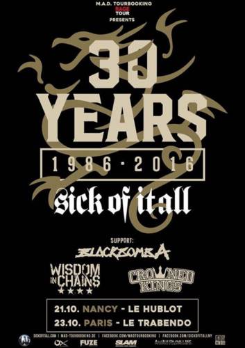 Sick Of It All : Black Bomb A + Wisdom In Chains + Crowned Kings