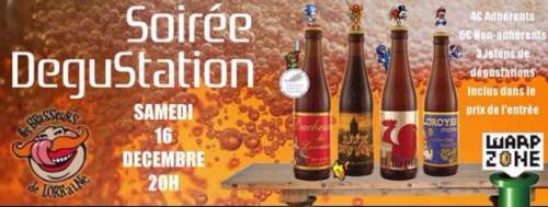 Dégustation de quoi me direz-vous - Et bien dégustation de bière mes chers amis, et pas n’importe lesquelles ! Nous vous proposerons pas une, pas deux, pas trois, mais QUATRE bières à venir goûter le samedi 16 Décembre à partir de 20h00 en nos locaux du 27, Rue Braconnot. Ces bières proviennent toutes d’un brasseur local : Les brasseurs de Lorraine ! (http://www.brasseurs-lorraine.com/)